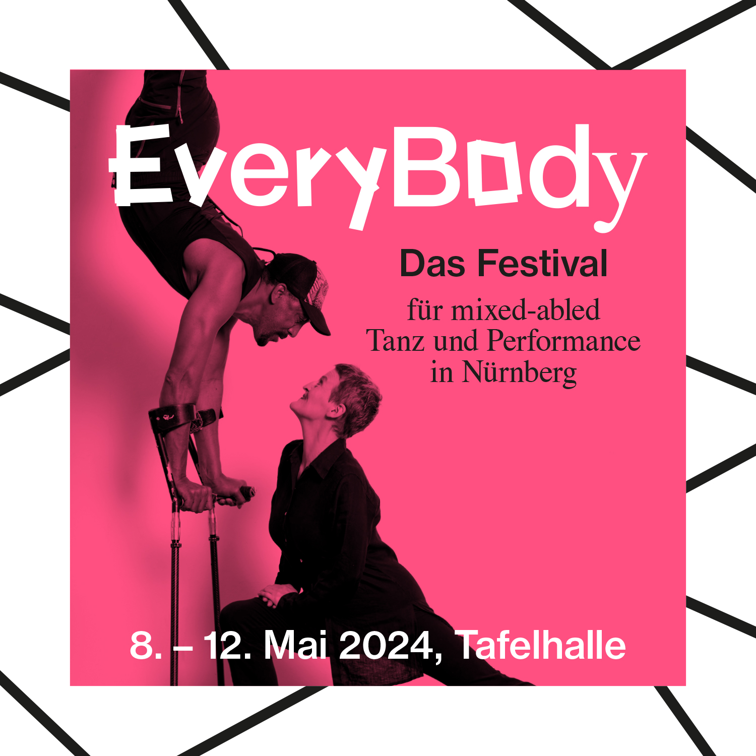 Vom 9. bis 22. März 2026 findet in Nürnberg die dritte Edition des EveryBody Festivals statt – in Kooperation mit Tafelhalle, Künstlerhaus und dem Dokumentationszentrum Reichsparteitagsgelände. Das Festival präsentiert herausragende internationale Tanz- und Performanceproduktionen von und mit Künstler*innen mit und ohne Behinderung.