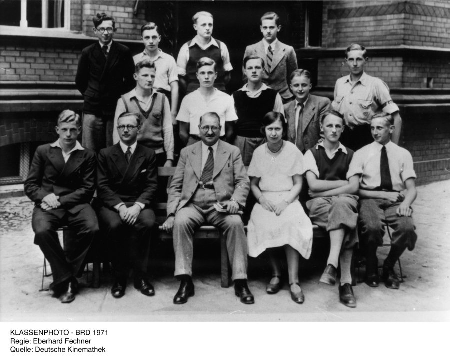 In dem zweiteiligen Film rekonstruiert Eberhard Fechner die Geschichte einer Schulklasse, deren Schüler 1937 in Berlin-Wedding das Abitur bestanden hatten. Ausgangspunkt der Recherche ist das titelgebende Klassenfoto. Fechner interviewt 13 überlebende Schüler. Bei allen unterschiedlichen Schicksalen und Lebensläufen ist auffällig, wie oft Entschuldigungen, Ausreden und Verharmlosungen der NS-Zeit geäußert werden. Allein ein emigrierter Jude, der für seine einstigen Mitschüler ohne großes Bedauern verschwunden zu sein scheint und beim abschließenden Klassentreffen fehlt, betrachtet die Dinge völlig anders.