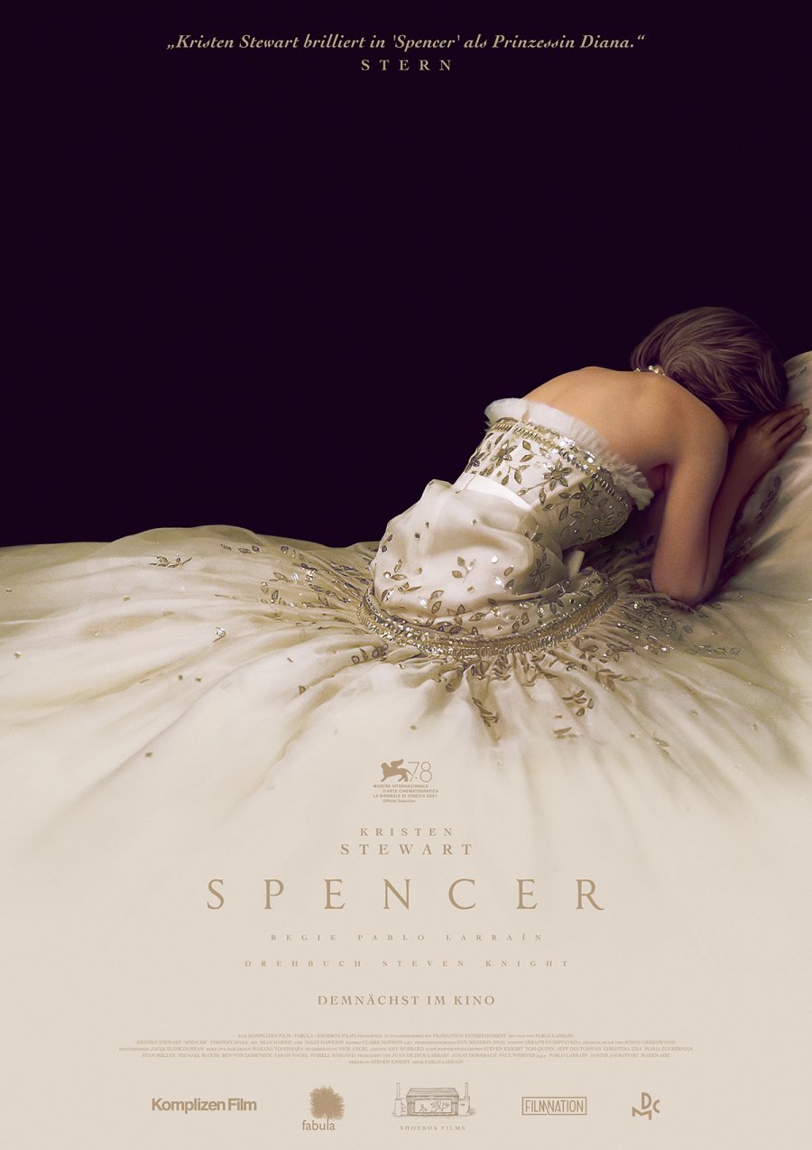 „SPENCER vermittelt eine tiefe und emotionsgeladene Vorstellung davon, wer Diana an einem Wendepunkt ihres Lebens war. Er ist eine Bestandsaufnahme dessen, was sie ausmacht, die mit ihrem Mädchennamen Spencer beginnt. Zu sich selbst zurückzufinden ist ein qualvoller Kraftakt für Diana, während sie darum kämpft, an dem festzuhalten, was der Name Spencer für sie bedeutet.“ (Kristen Stewart). Sehr detailliert trifft Stewart, die dafür für den Oscar nominiert wurde, als Lady Di Stimme, Sprechweise, Akzent und Körpersprache der Prinzessin.