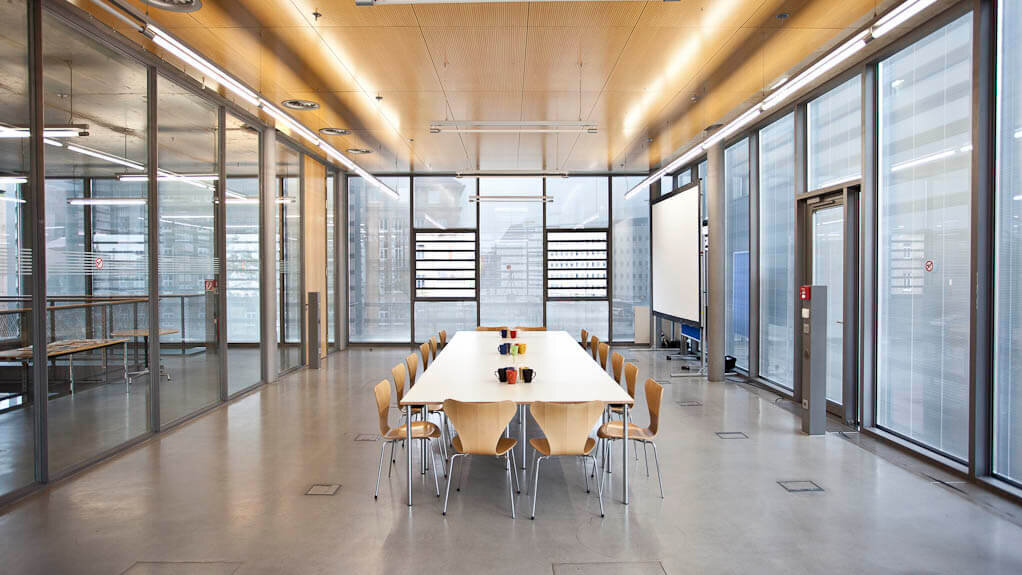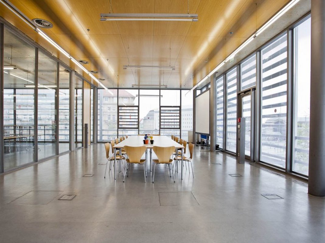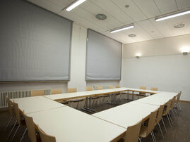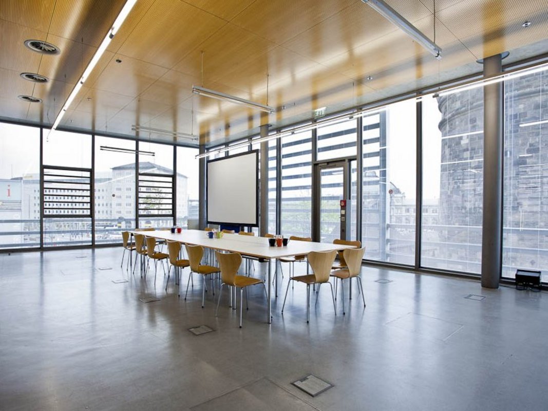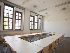 Konferenzbestuhlung mit Tischen für bis zu 24 Personen gut geeignet.