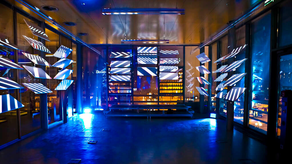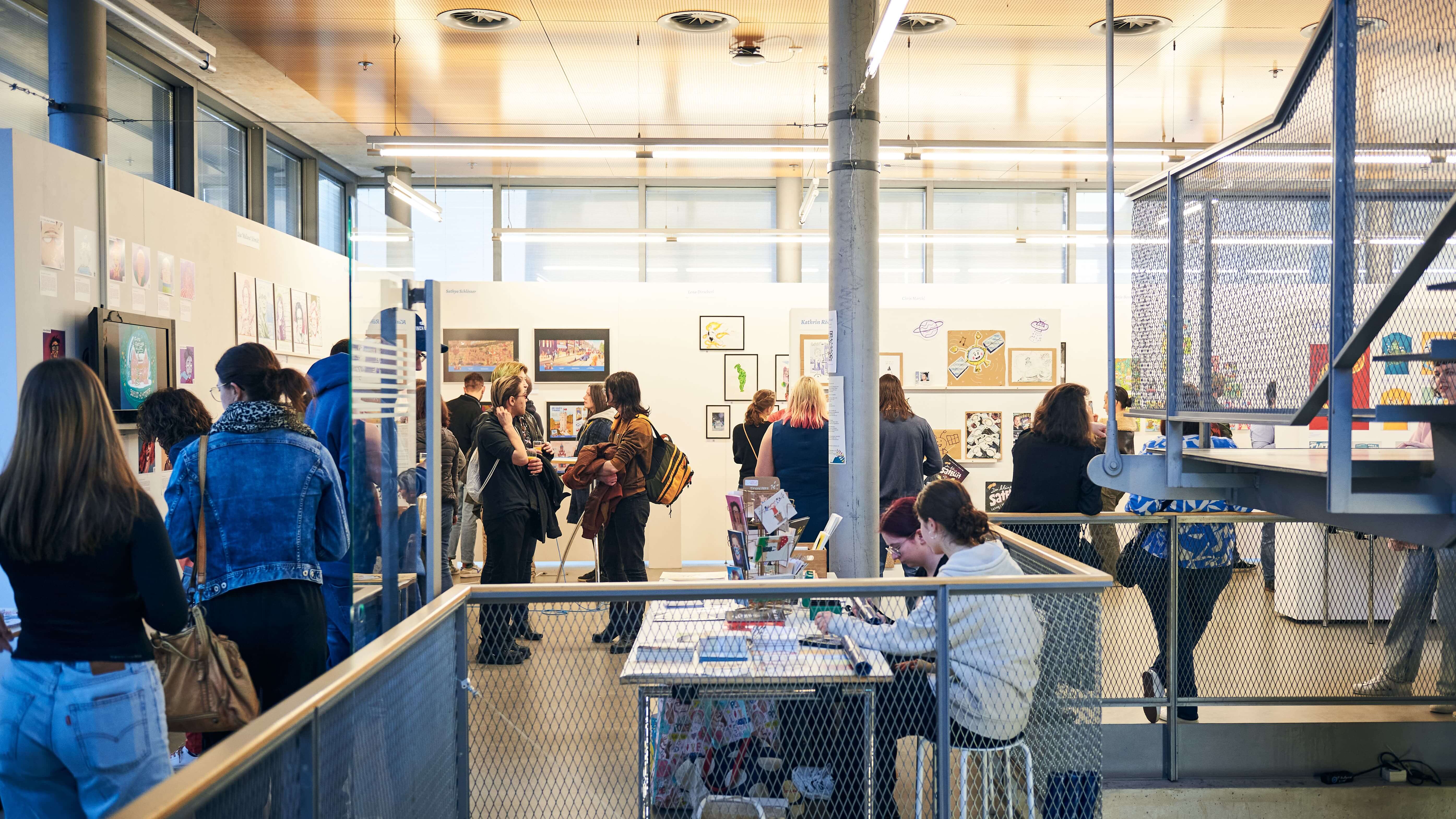 Geteilter Luftraum mit Filmhauscafé und Treppenhaus, geeignet beispielsweise für Ausstellungen, Festivallounge oder Podien.