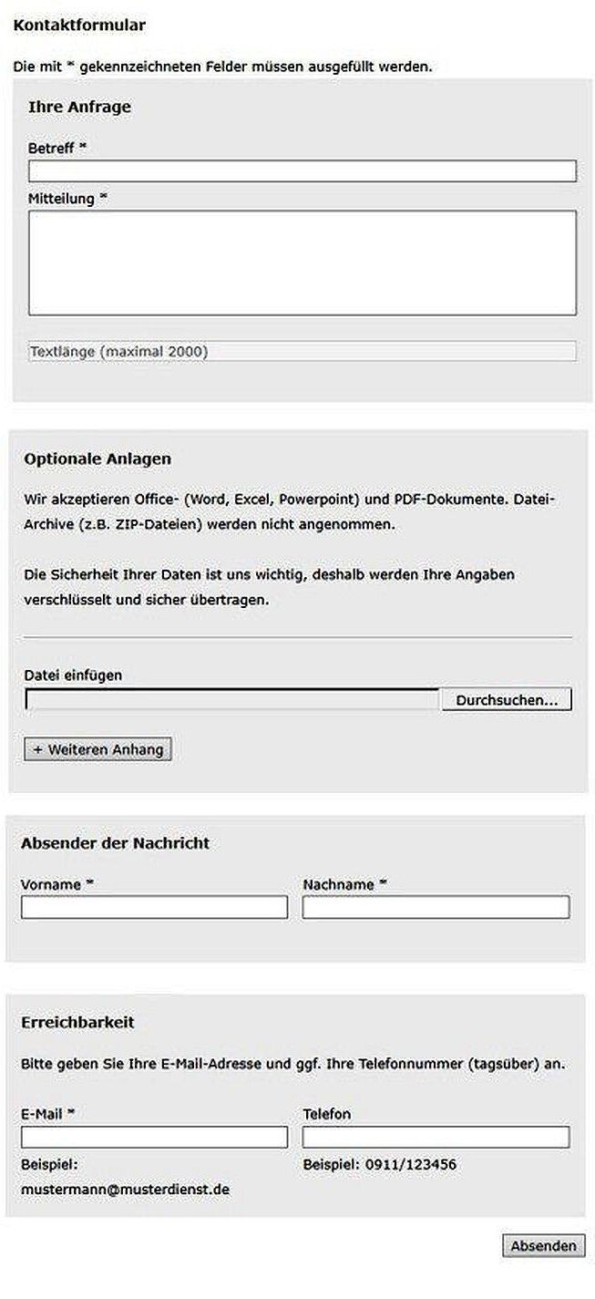 Die leeren Felder ohne Stern können Sie auch leer lassen.