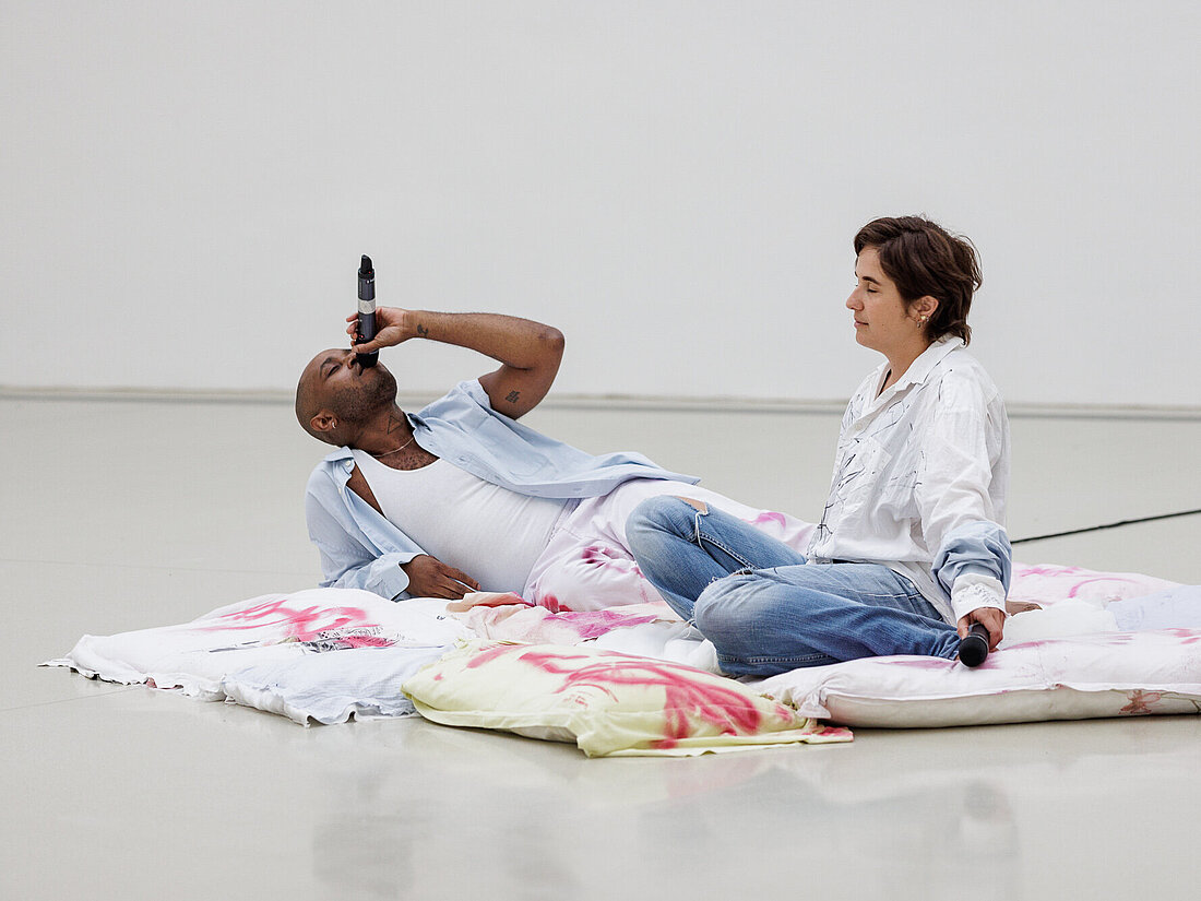 Sunny Pfalzer und Marshall Vincent vereinen in ihrer Kollaboration aktivistische Poesie, textile Kunst und musikalische Erzählkraft, um die Schnittstellen von Protest, Popkultur und politischer Geschichte in eine kraftvolle, interdisziplinäre Performance zu verwandeln.