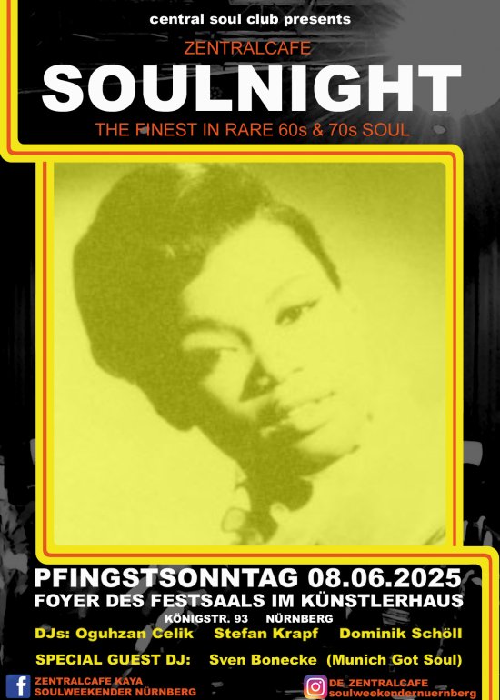 auch für die nächste Zentralcafe Soulnight am Pfingstonntag, 08.06.2025, haben wir wieder das Foyer des Festsaals im Künstlerhaus für euch gewinnen können (mit Fischgrätparkett und historischem Ambiente prädestiniert). Wir freuen uns auf die Unterstützung unseres besonderen DJ Gastes Sven Bonecke (Munich Got Soul) der mit seiner Kollektion, neben euren bekannten Gastgebern Stefan Krapf, Dominik Schöll und Oguzhan Celik, auch mit für die ultimative Mischung an 60s und 70s Raresoul sorgen wird.