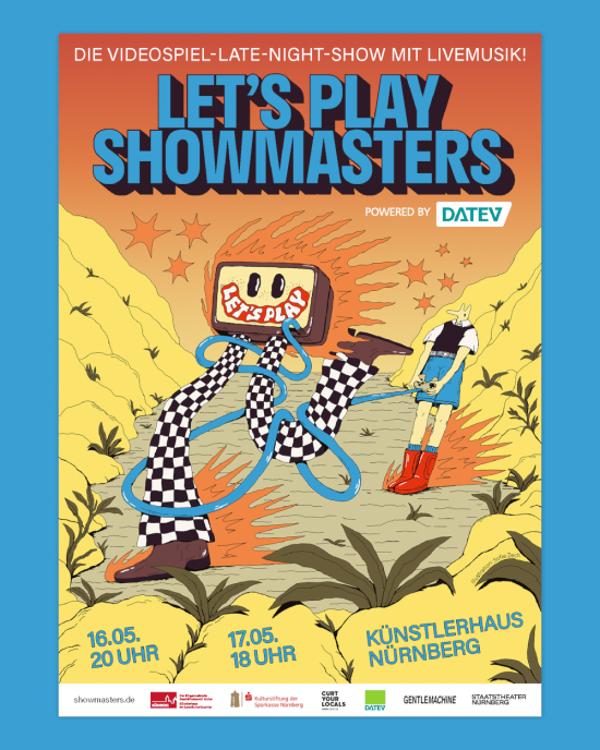 "Let´s Play Showmasters" bringt das digitale Format des Let’s Play auf die Theaterbühne. In den Live-Shows begleitet das Studiopublikum die Moderatorin und Gamemasterin Greta Călinescu, die den mittelguten Gamer Tim Steinheimer durch vielfältige und sorgsam kuratierte Videospielwelten leitet. Die gespielten Abschnitte zeichnen sich durch kreatives Gameplay, visuelle Ästhetik und erzählerische Raffinesse aus. Und: An beiden Abenden werden unterschiedliche Videospiele gespielt - mehrfach kommen lohnt sich!