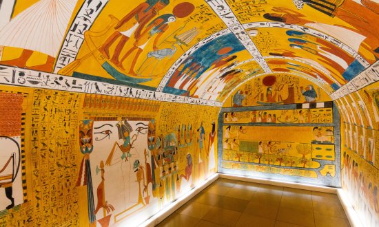 Die Rekonstruktion der Grabkammer erfolgte unter Leitung des Ägyptologen Wolfgang Wettengel – das Original befindet sich im Tal der Könige bei Luxor. Über und über reich mit Bildern und Hieroglyphen ausgemalt, offenbart der Raum die altägyptischen Vorstellungen vom Sein nach dem Tod.