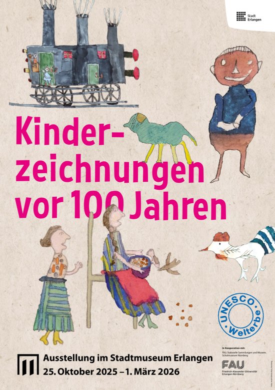 Heute zählen die Kinderzeichnungen aus der Sammlung Daiber zu den bedeutendsten Beständen der Schulgeschichtlichen Sammlung der Friedrich-Alexander-Universität Erlangen-Nürnberg. Das Stadtmuseum Erlangen zeigt nun in Kooperation mit dem Schulmuseum Nürnberg und der FAU Stabsstelle Sammlungen und Museen erstmals eine Auswahl dieser Bilder, die im Frühjahr 2025 von der UNESCO zusammen mit 16 weiteren internationalen Sammlungen von Kinderzeichnungen zum Weltdokumentenerbe ernannt wurden – weil sie in außergewöhnlicher Form neue Perspektiven auf das kulturelle Gedächtnis Europas eröffnen und zu Dialog, Mitgefühl und Erinnerung anregen.
