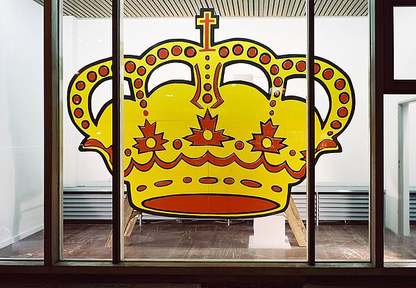 Stowaway (2004), the work behind the exhibition title at Kunsthalle Nürnberg, and Star Projector (2005) display a number of parallels to the installation Micros. In terms of colour, paint and surface texture, Stowaway is a deceptive copy of a flight recorder. But its wooden materiality undermines its function as an information storage device. The flight recorder becomes a hermetic black box holding no information or knowledge. The gigantic Star Projector is the image of a device used in planetariums to display the starry sky from the earth’s perspective. As a replica made of birch plywood, Oliver van den Berg’s Star Projector becomes an impressive body in the room; now, its sculptural quality is what comes into focus. Instead of serving as an image projector, it is an image in itself – an object of contemplation.