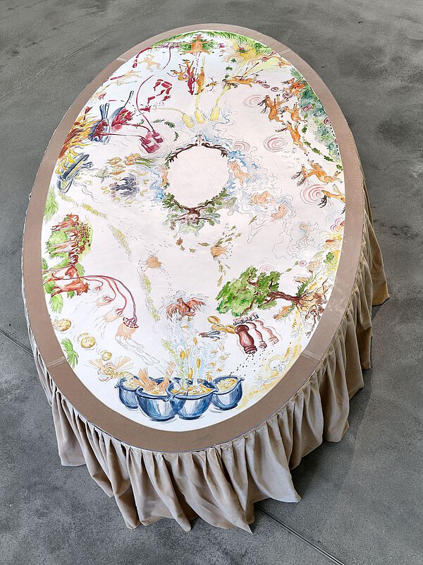 This social development offers a starting point for the exhibition Delikatessen. Zwischen Kunst und Küche. Current exploration of the border area between art and cuisine is introduced via 23 artistic positions, with a great variety of aspects being presented: Starting from the level of aesthetic reflection, through sensual experience to political issues.