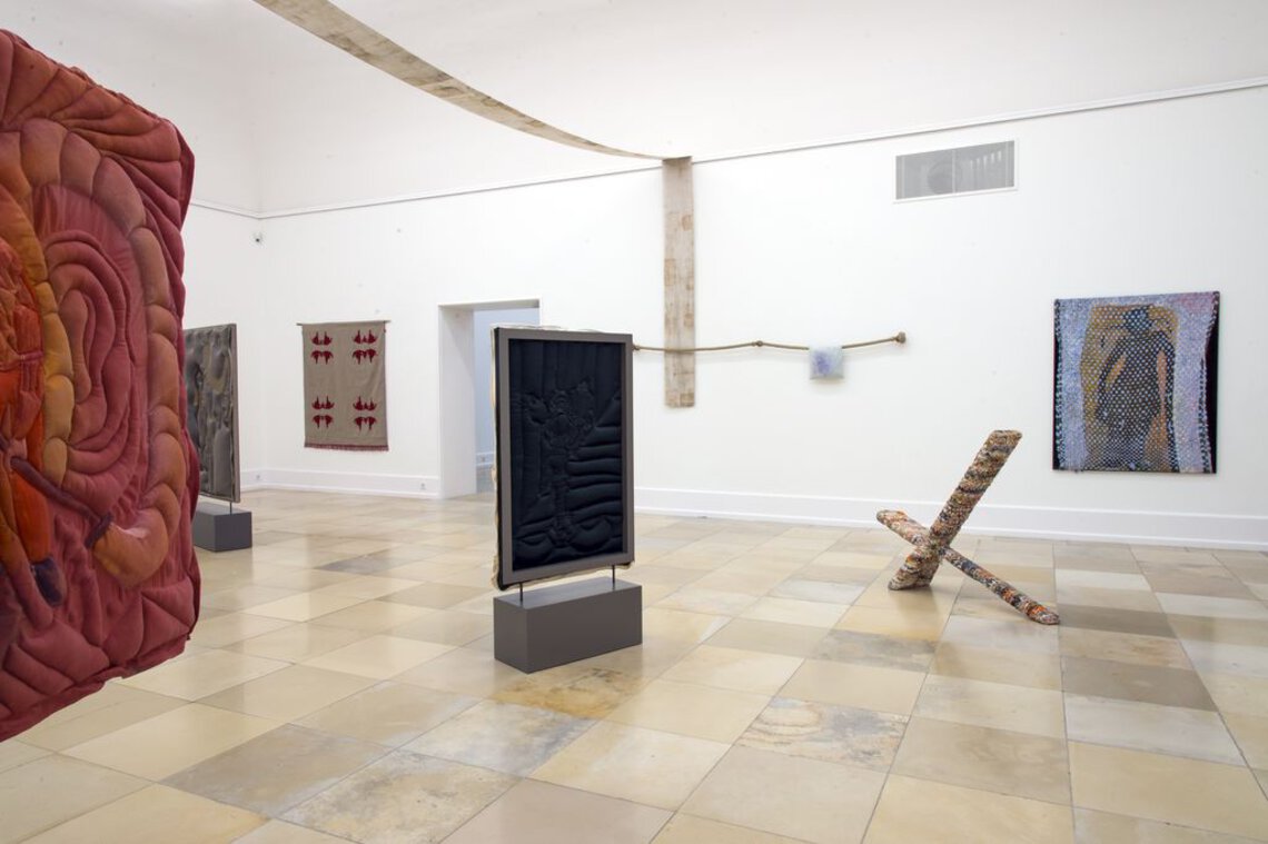 Mit Bis die Zeit vergeht hat Alex Müller für die acht Oberlichtsäle der Kunsthalle Nürnberg eine spezifische Ausstellung entwickelt, denn die Dramaturgie der Räume scheint besonders geeignet, den komplexen Kosmos der Künstlerin zu visualisieren. Sie dienen der Künstlerin als eine Art Archiv und bieten die Möglichkeit, zu sortieren, zu gewichten und Relevantes zu thematisieren. So benennt die Künstlerin die Ausstellungsräume nach Orten und damit nach zentralen Stationen in ihrer Biografie: vom Dorf Huchem-Stammeln bei Düren über Los Angeles und Carcassonne bis zum Berliner Stadtteil Neukölln, indem die Künstlerin heute lebt. Ein zielorientiertes Durchschreiten der Räume wird von der Architektur nicht vorgegeben. Jeder der Räume der Kunsthalle Nürnberg besitzt eine neue Ausrichtung sowie charakteristische Proportion, und jeder der Räume führt uns weiter und weiter durch eine Architektur, die in die historische Stadtmauer Nürnbergs integriert ist. Gekonnt thematisiert Alex Müller diese spezifische Raumstruktur, indem sie die Ausstellungsbesucher*innen immer wieder vor Barrieren laufen lässt, alternative Laufwege definiert oder durch installative Eingriffe Umwege provoziert.