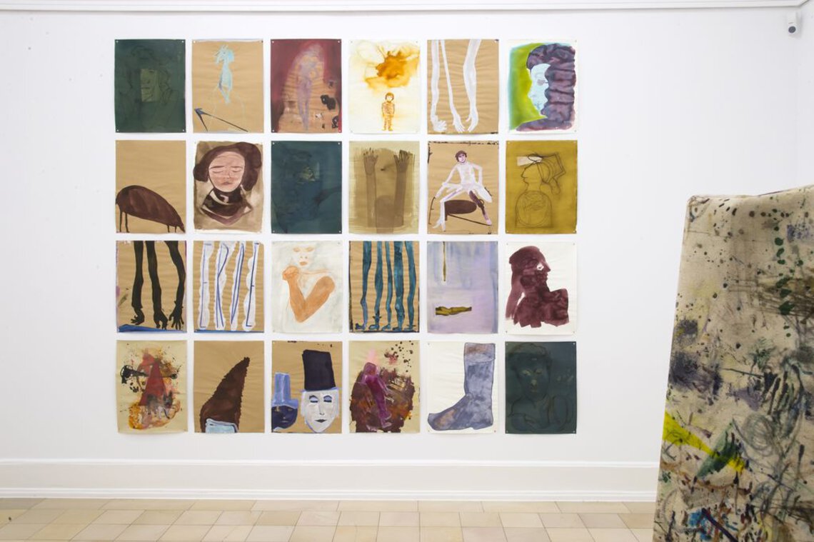 Hände, Hüte, Besen und das Haus vom Nikolaus. Messer, Gabel, Löffel und die Fünf als kompakte Strichliste. Erbsen, Füße, Stiefel und grafische Muster: All diese Stellvertreter unserer Lebensrealität erhalten im Werk von Alex Müller eine spezifische Aufladung, ebenso wie jegliches Material in ihrem Œuvre zum künstlerischen Werkstoff werden kann. Die narrative Offenheit ihrer Arbeiten verstärkt die Künstlerin durch ein kluges Spiel mit den Grenzverläufen zwischen Malerei, Zeichnung, Bildhauerei, Installation, Film, Sound und Performance.