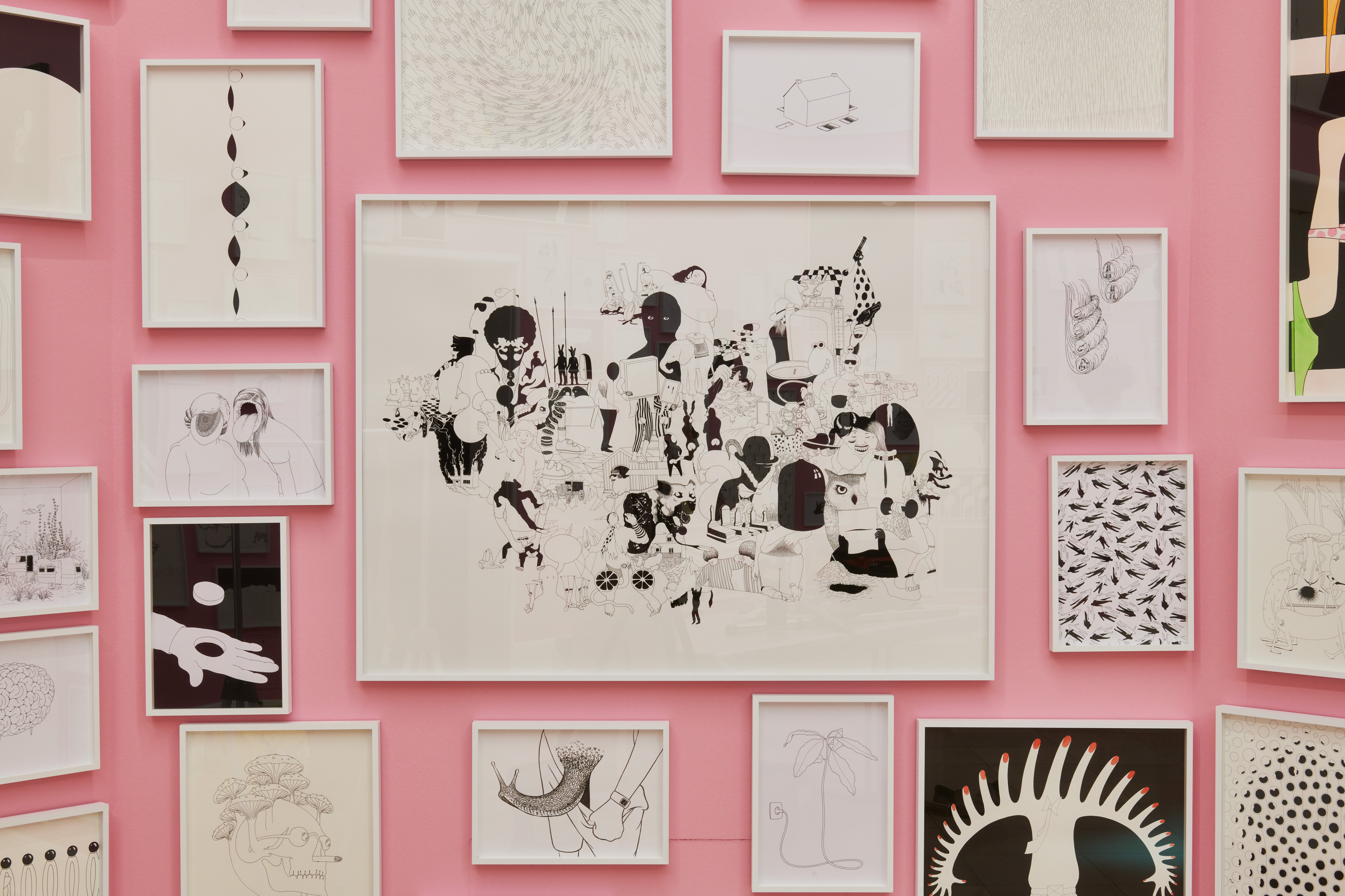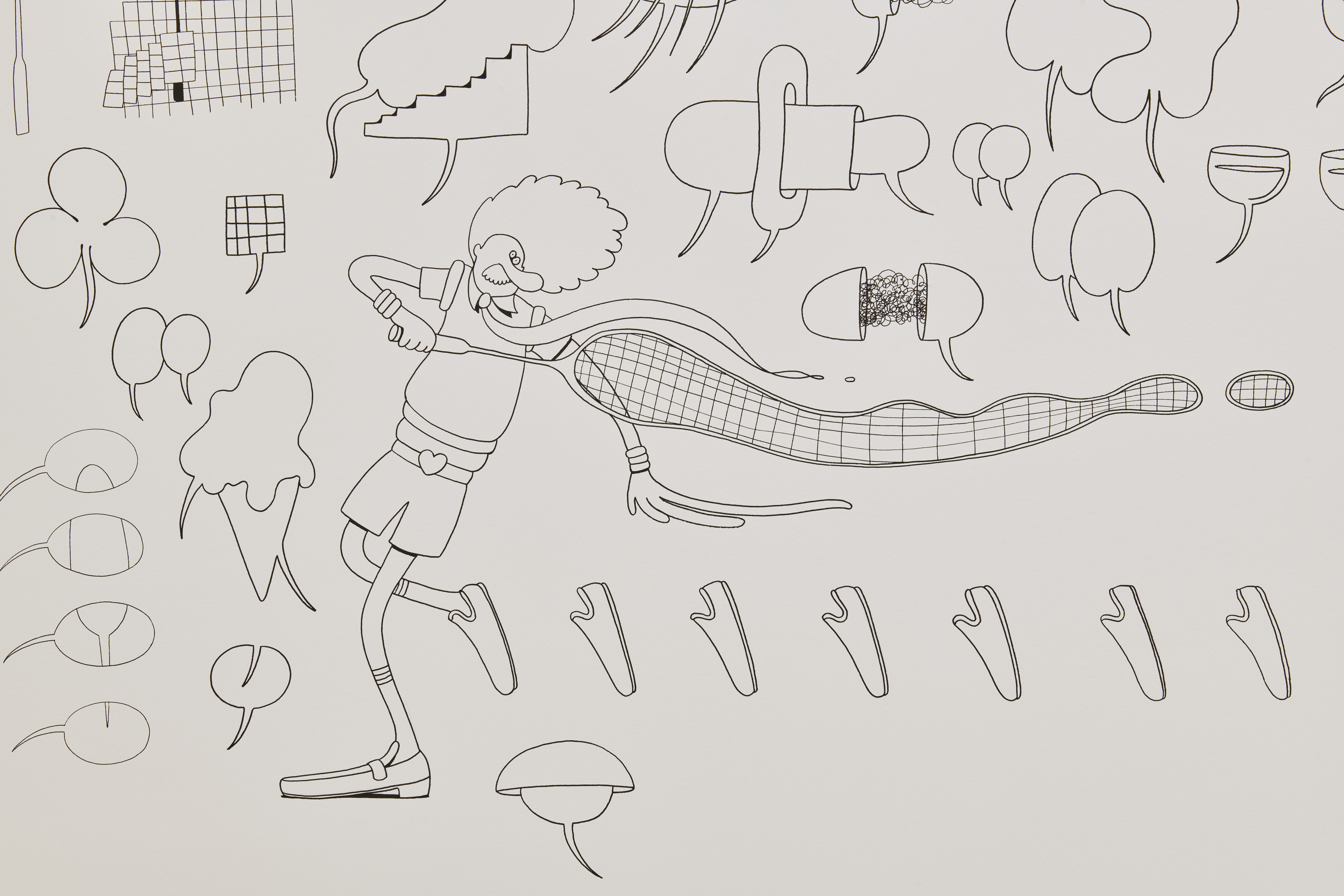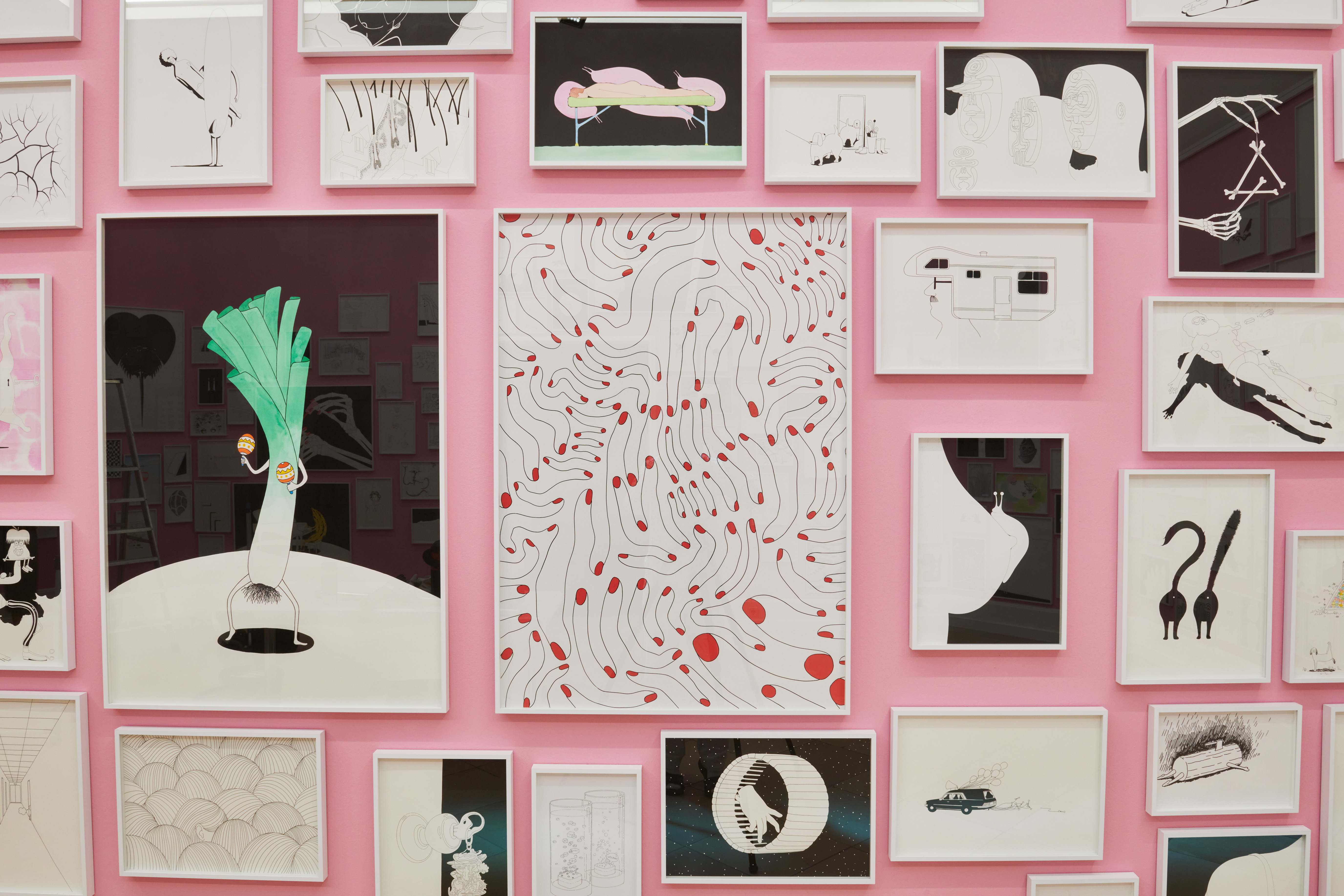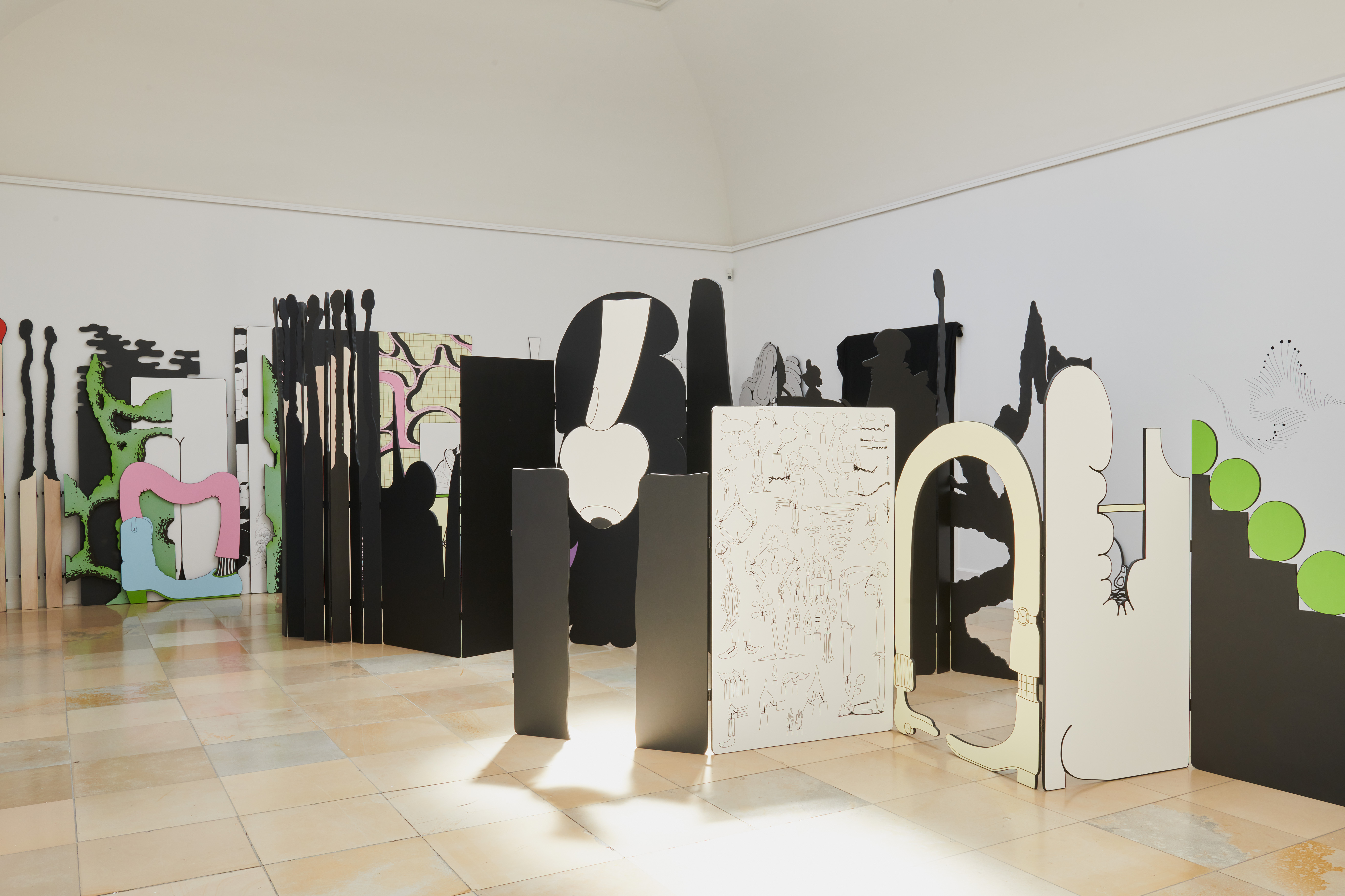 Die Kunsthalle Nürnberg zeigt eine umfassende Werkpräsentation, die von Mrzyk & Moriceau speziell für die acht Oberlichtsäle konzipiert wurde und rund 400 Arbeiten vorstellt, darunter ortsbezogene Wandmalereien, Zeichnungen, Animationsfilme, Paravents, Keramikobjekte sowie ein mit Schlägern und Netz ausgestattetes Badmintonfeld, das von den Besuchenden benutzt werden kann.
