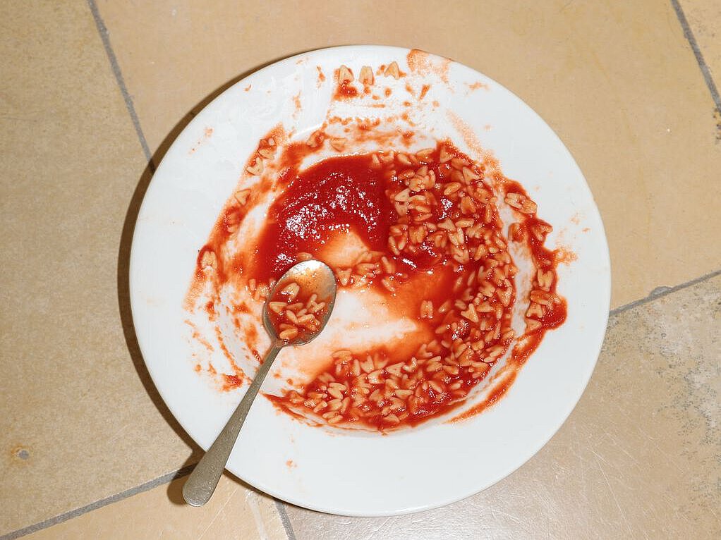 War Carsten Höller, selbst Restaurantbetreiber, die für viele Köche grausame Wahrheit hinter seiner Installation bewusst? Man kann es vermuten, denn die Materialien des kleinkindlichen Erbrochenen sind feinsinnig aus Tomatensoße und Buchstabennudeln komponiert. Installiert wurde die organische Malerei in diesem Fall nicht von Höller selbst, er gab lediglich Anleitung für einen stellvertretenden Auswurf, der fachkundig durch das Team der Kunsthalle Nürnberg realisiert wurde. Das scheint wie eine doppelte Provokation: Nahm Höller in der ersten Version des Werks noch selbst die Rolle des in die Ecke speienden Kindes ein, übergibt er diese nun an andere, und bleibt dadurch selbst geradezu unbefleckt. Denn Kinderkotze ist zweifelllos das radikalste Schicksal jeglicher Kochkunst.