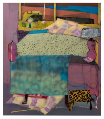 Die Gemälde des 1986 geborenen Künstlers erinnern bisweilen an surreale Wohnlandschaften und gewähren einen Blick in einen Innenraum, ausgestattet mit den vielfältigsten Protagonisten einer bürgerlichen Existenz: Tisch, Stuhl und Minibar, Kerzenhalter und Zimmerpflanzen, Teppich und Vorhänge. Bildkomposition und Motivik erinnern an die Malereigattung des Interieurs und zugleich an ein überbordendes Stillleben alltäglicher Dinge.
