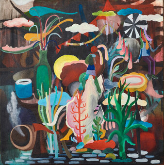 Monika Michalko (*1982 Sokolov, Tschechien) verbindet in ihrer Malerei figürliche und objekthafte, vegetabile und ornamentale, abstrakte und architektonische Bildelemente. Diese verwebt sie zu einem organischen Gefüge, das eine alternative Wirklichkeit zu repräsentieren scheint, die nicht den Gesetzmäßigkeiten der Perspektive, Schwerkraft oder Proportion verpflichtet ist. Ihre Gemälde sind komplexe Wimmelbilder: Formen und Farben füllen die zur Verfügung stehende Fläche gänzlich aus, und es lassen sich immer wieder neue Mikroerzählungen entdecken. Ihre Kompositionen entstehen im Bewusstsein unserer alltäglichen Realität mit all ihren Krisen, Eskalationen und Katastrophen und repräsentieren ihre Fähigkeit zur Gestaltung einer alternativen Welt sowie zur Flucht in ebendiese.