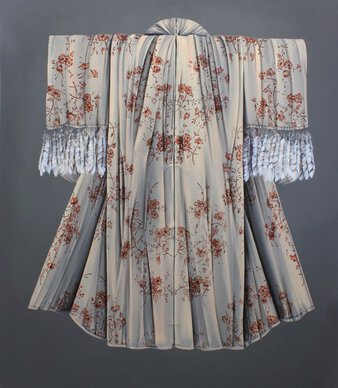 Für den Aufbau der Objekte sind die klaren Linien der komplexen Faltenwürfe ebenso zentral wie die floralen, geometrischen oder auch ornamentalen Muster der gemalten Stoffe und Tücher. Die teils „altmeisterlich“ erscheinende Akribie und Detailverliebtheit der Malerei spielen mit der Wahrnehmung des Betrachters: Die Körper, die ihm auf den ersten Blick vertraut erscheinen und seine Neugierde wecken, erweisen sich auf den zweiten Blick als surreal verschlüsselt und der Logik widersprechend.