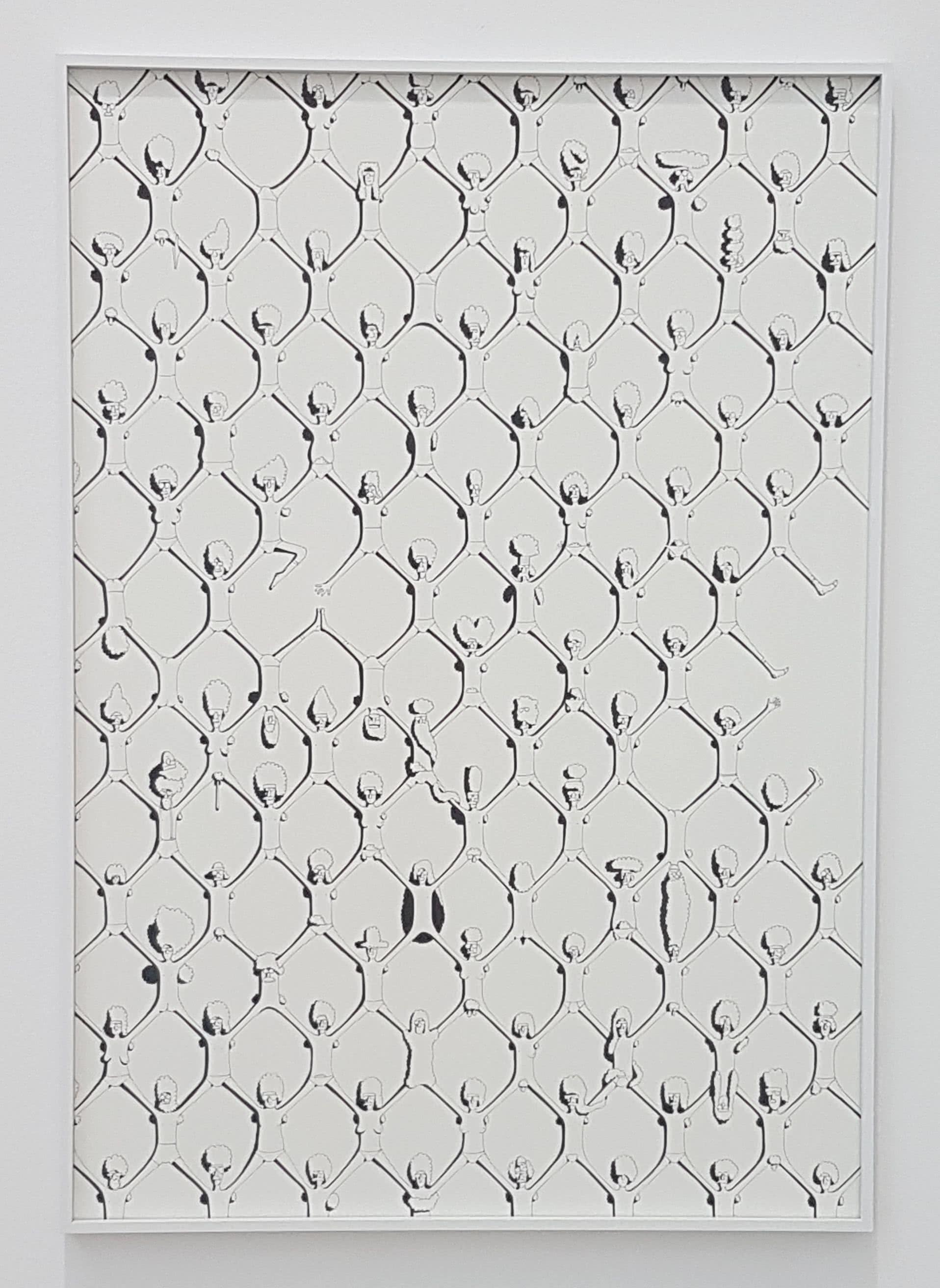 Seine mit Bedwork/Yes, I am betitelten Zeichnungen fertigt Soufiane Ababri im Bett liegend an. Inspiration für die homoerotisch aufgeladenen Arbeiten, die mal explizit, mal poetisch männliches Begehren und männliche Sexualität umkreisen, bezieht er sowohl aus eigenen Smartphone-Schnappschüssen als auch aus Filmen, Pornos, Videoclips und Archivmaterial. Dabei spielt der Künstler mit Erwartungshaltungen, Stereotypen und Klischees, denn hinter der naiven Anmutung der Zeichnungen verbirgt sich eine vielschichtige Auseinandersetzung mit sexueller wie kultureller Dominanz, mit der Fetischisierung nicht-weißer männlicher Körper, mit der Diskriminierung schwuler Araber sowohl in seinem Geburtsland Marokko als auch in Europa.