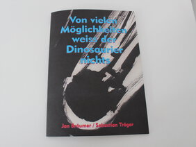 Das Künstlerbuch von Jan Bräumer und Sebatian Tröger zur aktuellen Ausstellung " Von vielen Möglichkeiten weiß der Dinosaurier nichts" ist nun erhältlich. Es dokumentiert die Ausstellung im Kunsthaus und enthält darüber hinaus einen Text von Harriet Zilch. Der Katalog ist für 5 Euro an der Kasse des Kunsthauses erhältlich.