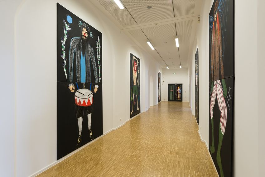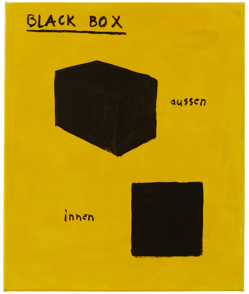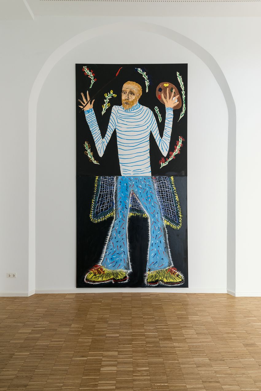 Zitate und Verweise finden sich auch auf sprachlicher Ebene, und häufig erschließen sich die Arbeiten von Jan Bräumer und Sebastian Tröger nicht durch die Darstellung selbst, sondern erst in Ergänzung mit ihren hintersinnigen Werktiteln. Jan Bräumer zitiert vielfach Textphrasen, die an geistlose Werbeslogans oder Schlagzeilen der Boulevardpresse erinnern: gewollt trivial und bisweilen reißerisch, jedoch durch die bildliche wie gedankliche Neuverknüpfung ebenso subversiv wie unterhaltsam. Sebastian Tröger rückt das System Kunst in den Fokus seiner Bildwelten. Seine Werktitel verweisen epochenübergreifend auf die unterschiedlichsten Kunstakteure: von Dürer und Cranach über Malewitsch, Klee, van Gogh und Picasso bis hin zu zeitgenössischen Protagonisten wie Gerhard Richter, Neo Rauch oder André Butzer. Aus den Versatzstücken unserer kulturellen Historie wie Gegenwart baut er einen sehr eigenen Kosmos mit wildem Figurenrepertoire und Mythenmix.