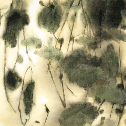 Dong Xiao Mings meist großformatige Lotusbilder sind zeitgenössische, aus der historischen Tradition chinesischer Tuschmalerei weiterentwickelte Werke und seine Tuschmalerei auf Segeltuch ist eine völlig neuartige Entwicklung im Bereich traditioneller chinesischer Tuschmalerei.