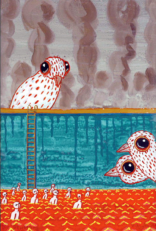 In einem anderen thematischen Strang hat Hallmann die Vereinzelung des Menschen, seine letztendlich große Einsamkeit und die daraus resultierenden Grenzer-fahrungen mit großer Empathie in beeindruckende Bilder umgesetzt. Das große Welttheater findet hier seine Entsprechung auf individueller Bühne, wo Ängste, Hass, Gier, Verzweiflung das "Geschehen" bestimmen.