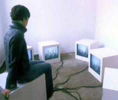Auch auf ihren großformatigen Dias findet Natur immer einen Weg, in einem urbanen Umfeld auf sich aufmerksam zu machen. Die Authentizität der photografischen Darstellung gefundener Skulpturen, die bestechende Wiedergabe von Gräsern in zarten Bleistiftzeichnungen, stehen dabei in klarem Kontrast zu der inszenierten digitalen Realität von Margarete Schrüfers Video-Animationen.