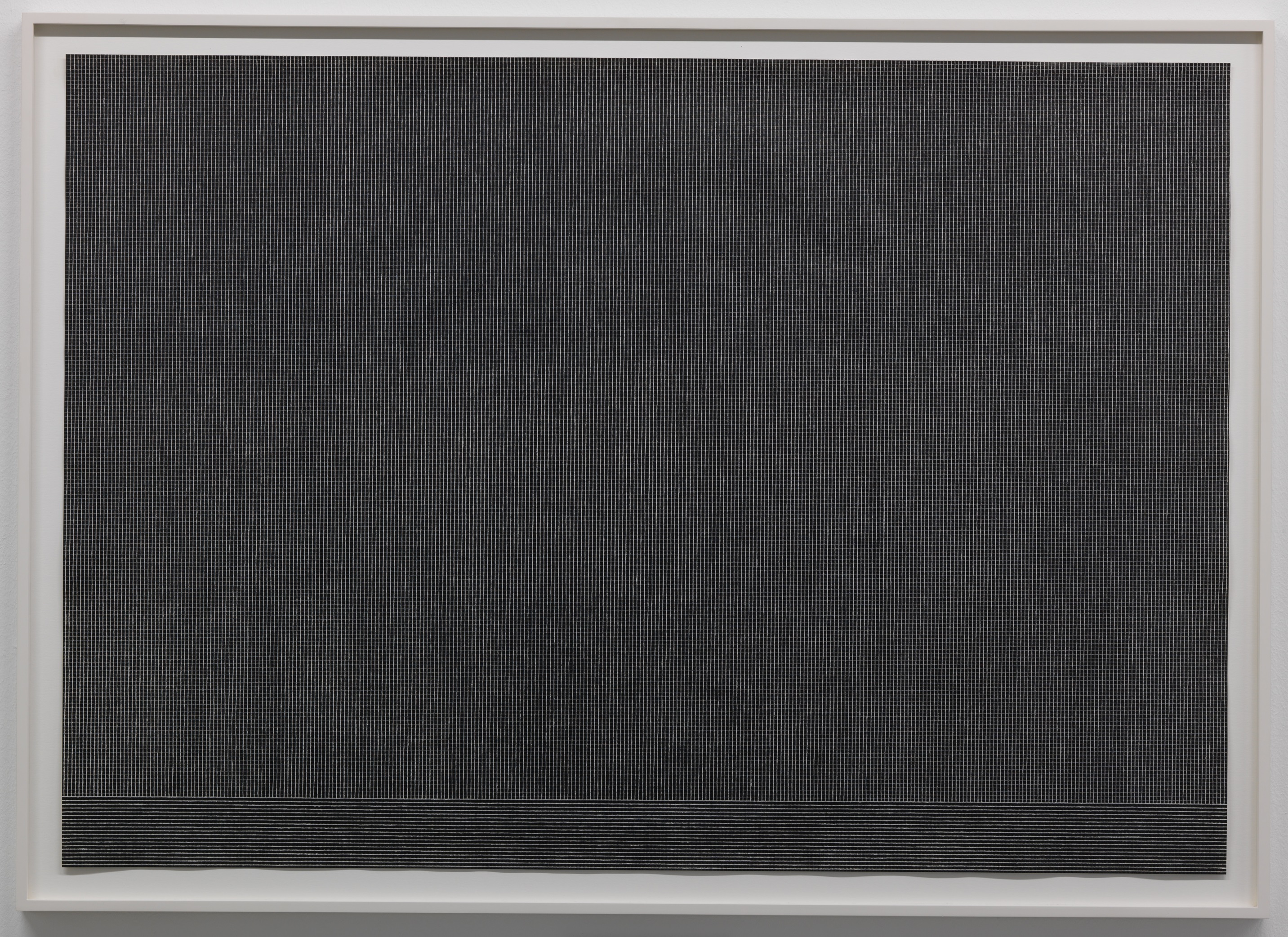 Jürgen Krause ritualisiert die Wiederholung. In seiner Serie Handzeichnungen zeichnet er präzise auf einem weißen Din A4 Papier konzentriert senkrechte und waagrechte Linien, die auf den ersten Blick einem scheinbar industriell gefertigten Karopapier ähneln. Bei seinen Blattschneidearbeiten (offene Werkserie) schneidet er akribisch mit einem Skalpell konfettigroße Kreise im engen Rapport aus einem Din A4 heraus, bis ein filigranes Papierskelett übrig bleibt.