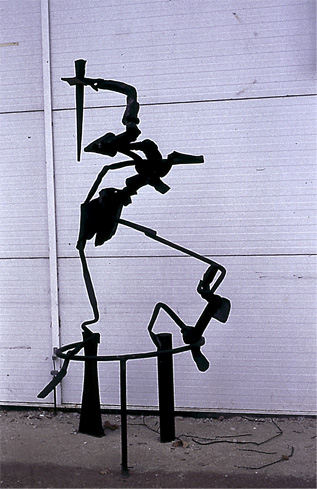 Blech und Eisen, das klingt hart, kalt, gefühllos. Der junge Bildhauer Selcuk Dizlek indes erweckt in den Metallwaren ganz andere Töne. Sein aus farbigen Blechflächen und verschlungenen, verschraubten Vierkanteisen gefertigtes Wandobjekt schmiedet aus dem eisernen Stoff konstruktive Heiterkeit.