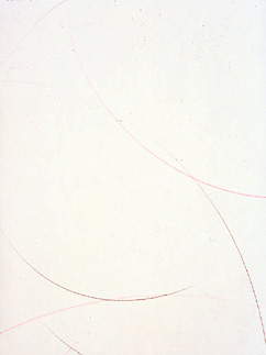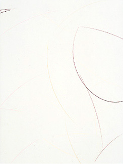 Manche Blätter erscheinen beinahe »frech« und in ihrer strahlenden Leichtigkeit »ungehörig«. Dies ist auch geschuldet der Brillanz, mit der der Raum, den das Papier vorgibt, spannungsvoll, aber ausgewogen aufgeteilt ist. Runde Formen dominieren, manche Blätter sind mit zwei Stiften (in der Hand) gleichzeitig bezeichnet, Kreuze, bar jeder Symbolik, wurden aufs Blatt geworfen. Trotzdem ist jedes Blatt in sich gerundet, kein all-over, irgendwo ist Anfang und Ende, doch wo oder was - welche Linie - ist wohl der Beginn, welche das Innehalten der raschen Handbewegung?