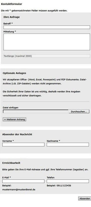 Die leeren Felder ohne Stern können Sie auch leer lassen.