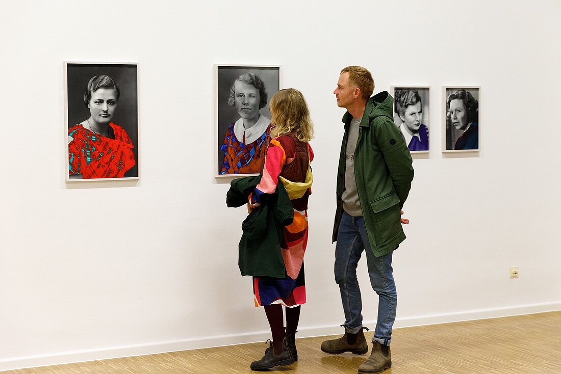 Seit den 1970er-Jahren basiert das fotografische Werk von Cindy Sherman (*1954) auf der zentralen Frage nach der Konstruktion von Identität sowie Möglichkeiten ihrer Transformation und Fiktionalisierung. Dabei zitiert die Künstlerin häufig Stereotypen des kollektiven Bildgedächtnisses, die in unserer medial geprägten Gesellschaft vielfach zu finden sind. Ihre Fotografien, auch die im Kontext der Ausstellung präsentierten frühen Arbeiten Untitled #109 (1982), Untitled #112 (1982), Untitled #217 (1984/90) sowie Untitled #218 (1990) zeigen die Künstlerin in verschiedenen Maskeraden, als historische oder fiktionale Persönlichkeit, oft stark geschminkt, teils in affektierten Posen oder grotesk bis zur Unkenntlichkeit entstellt. Die Künstlichkeit der Rollen wird in Cindy Shermans Fotografien explizit betont und wird so zu einer Metapher für die generelle Künstlichkeit von Identitätskonstruktionen.