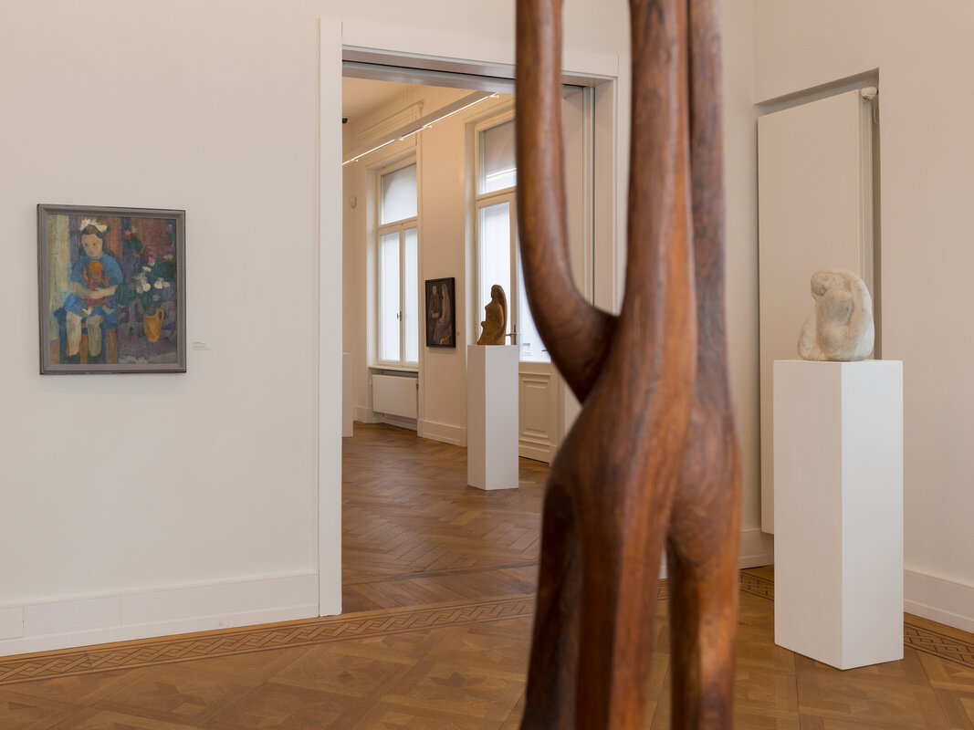 Ergänzend zur Sonderausstellung „Wilhelm Uhlig und die Tradition figurativer Plastik in Nürnberg“ zeigte die Kunstvilla im Jubiläumsraum Werke des Künstlers Leo Smigay (1900 – 1970). Der 1900 in Chojno/Wartheland geborene Smigay wuchs im Ruhrgebiet auf und ließ sich nach mehreren Stationen im Ausland schließlich in Nürnberg nieder. Sein Frühwerk, das der Künstler ab 1928 in einem kleinen Ladenatelier am Hans-Sachs-Platz verkaufte, wurde im Zweiten Weltkrieg vollständig zerstört. Nach dem Krieg war Smigay 1947 Mitbegründer der Künstlergruppe „Der KREIS“, der er bis 1959 angehörte. Darüber erlangte er nicht nur öffentliche Aufmerksamkeit, sondern stand auch in Kontakt mit der nachfolgenden Künstlergeneration, darunter Wilhelm Uhlig, der 1957 in den „KREIS“ eintrat. Smigays meist kleinformatige Plastiken sind von der klassischen Moderne geprägt. Der Künstler konzentrierte sein Schaffen auf die Darstellung menschlicher Figuren, denen er mittels einer geometrisch-abstrahierten Formensprache eine erhabene Ausdruckskraft verlieh.
