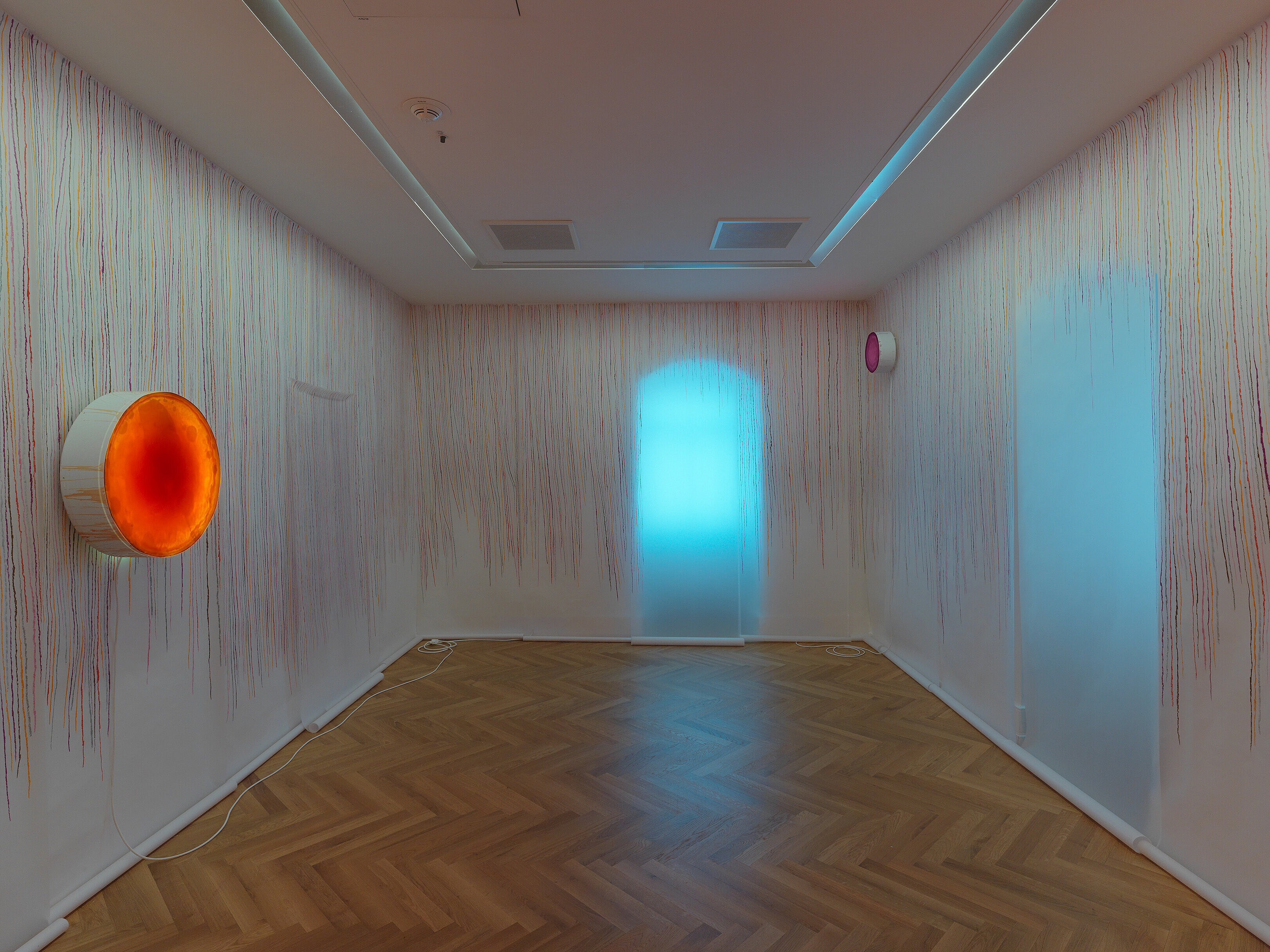 Inge Gutbrod (geb. 1963 Nürnberg) und Markus Kronberger (geb. 1964 Nürnberg) kennen und schätzen sich seit ihrer Studienzeit an der Nürnberger Kunstakademie. Während Inge Gutbrod fast ausschließlich mit Wachs arbeitet, dessen besondere Farb- und Materialqualitäten sie in Objekte und Rauminstallationen überführt, ist Markus Kronberger ein Vertreter der konkreten Malerei, die in seinen jüngsten Werken um grafisch gestaltete Schriftzüge erweitert wird. Für die Ausstellung in der Kunstvilla entstanden neue Arbeiten, die die Auseinandersetzung der beiden Künstler mit Farbe und Raum zum Thema hatten.