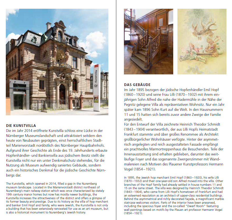 Man kann sich bessere Monate als den Januar für einen Umzug vorstellen, aber laut Archivunterlagen haben der jüdische Hopfenhändler Emil Hopf (1860 – 1920) und seine Frau Lilli (1870 – 1932) im Januar 1895 gemeinsam mit ihrem einjährigen Sohn Alfred die neobarocke Villa in der Blumenstraße 17 bezogen. Ein Jahr später kam der zweite Sohn Kurt zur Welt. Der Bezug der heutigen Kunstvilla als repräsentatives Wohnhaus der Familie Hopf jährt sich damit in diesen Tagen zum 130. Mal.