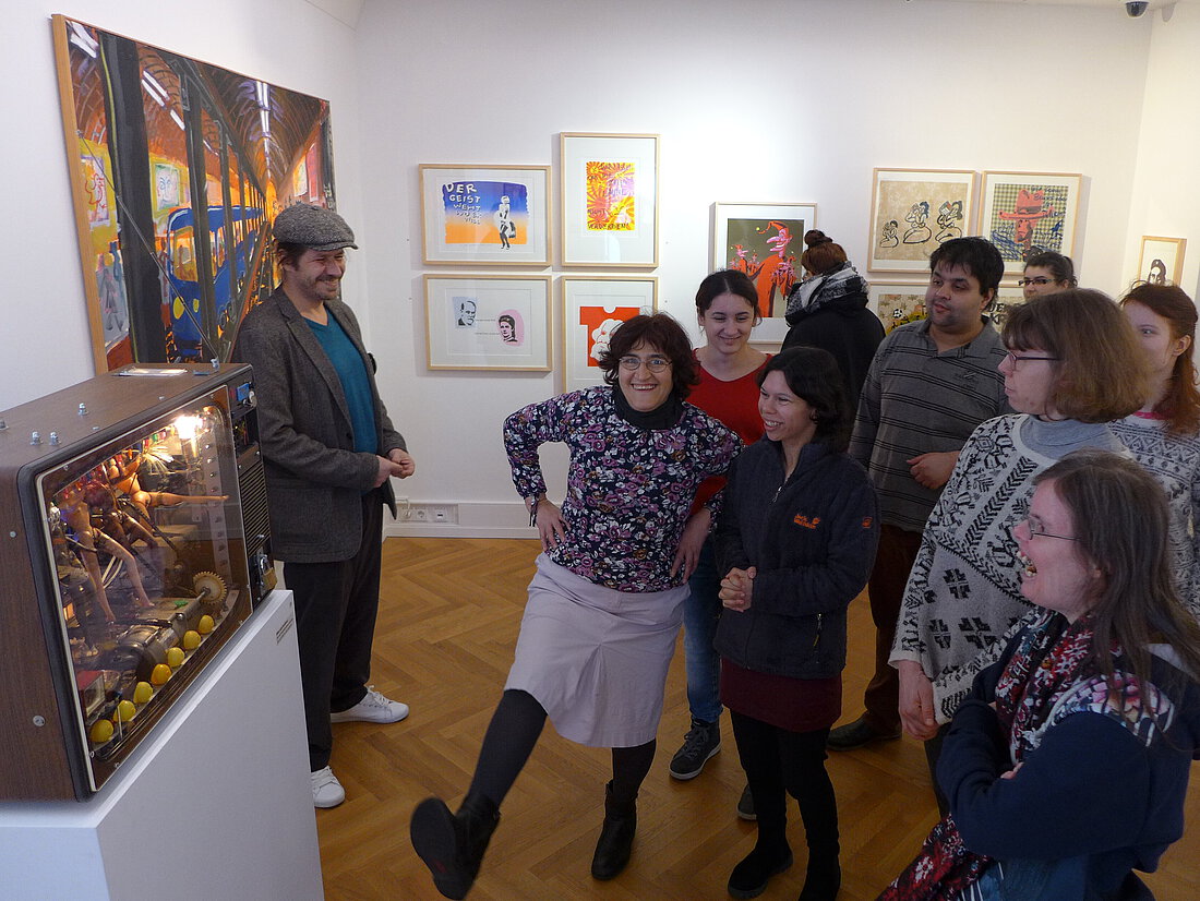 Ein besonderes Ziel der Kunstvilligen liegt in der Gewinnung inklusiver und diverser Besuchergruppen. Regelmäßig ergehen Einladungen an Institutionen wie die Lebenshilfe, NorisInklusion oder das Obdachlosenmagazin Straßenkreuzer. Im Bild die Künstler:innengruppe der Lebenshilfe bei einem Besuch der Ausstellung "Nürnberger Schule - führend in Malerei" im Jahr 2020.