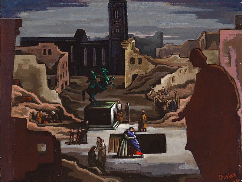 Dore Meyer-Vax, Impression 1945, 1946, Öl auf Malerkarton, 46,5 x 59 cm, Sammlung Kunstvilla, Foto: Annette Kradisch