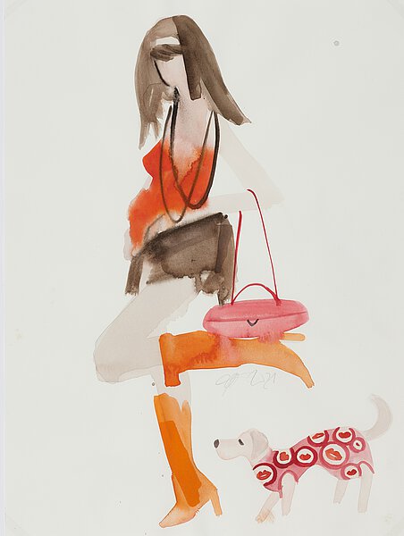 Cornelia Effner, Frau mit Hund, 2021, Aquarell auf Papier, 48 x 36 cm, Sammlung Kunstvilla, Foto: Annette Kradisch
