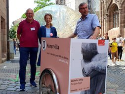 Im Jahr 2021 förderten die Kunstvilligen die Buchvorstellung von „111 Orte in Nürnberg, die man gesehen haben muss“, bei der der Autor Jo Seuß von dem Musiker Heinrich Hartl begleitet wurde. Gemeinsam schickten die beiden das Publikum auf eine abwechslungsreiche Entdeckertour nicht nur durch die Kunstvilla, sondern zu bekannten und noch mehr unbekannten Orten.