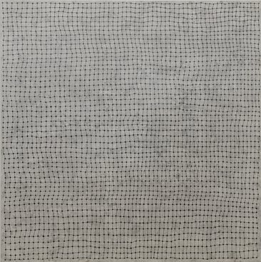 In dem unbetitelten Werk von 2001 verband Kampehl über die gesamte quadratische Bildoberfläche jeweils zwei schwarze Punkte mit einer Linie. Das vollendete Gitter ist entsprechend der Écriture automatique der Surrealisten ungleichmäßig. Die Unregelmäßigkeit spiegelt die Verfassung des Künstlers zum Zeitpunkt der Entstehung wider und eröffnet auf diese Weise einen kontemplativen Raum zwischen vorgegebener Struktur und künstlerischer Freiheit.