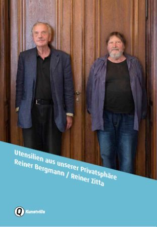 Utensilien aus unserer Privatsphäre – Mit ihrer Werkschau geben Reiner Bergmann (geb. 1950 in Nürnberg, lebt und arbeitet in Fürth) und Reiner Zitta (geb. 1944 in Buchelsdorf / Sudetenland, lebt und arbeitet in Pühlheim bei Altdorf) einen Überblick über ihr Schaffen der letzten 20 Jahre. Der Begleitband dokumentiert alle Facetten ihres künstlerischen Schaffens, darunter ortsbezogene Installationen sowie Objekte, Zeichnungen und Fotografien. Für beide Künstler spielt das Arbeiten mit gefundenem Material und Gegenständen eine wesentliche Rolle. Ihr Schaffen berührt dabei immer wieder das Thema der Zweit- und Drittverwendung von Dingen, die zuvor aus dem Verwertungskreislauf hinausgefallen sind. Auf den Spuren von Marcel Duchamp verleihen Reiner Bergmann und Reiner Zitta ausrangierten Alltagsobjekten neue Sinnebenen und liefern dabei ironische Kommentare zur konsumorientierten Wohlstandsgesellschaft.