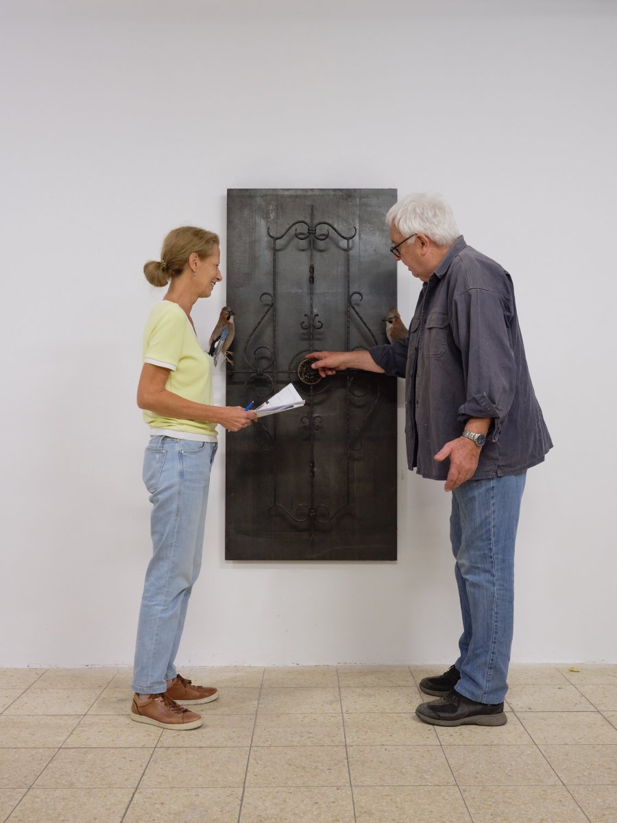 Dr. Andrea Dippel, Leiterin der Kunstvilla und Kuratorin der Ausstellung, führt gemeinsam mit Verena Waffek und Hubertus Hess durch die Ausstellung „Die wiedergefundenen Gärten“.