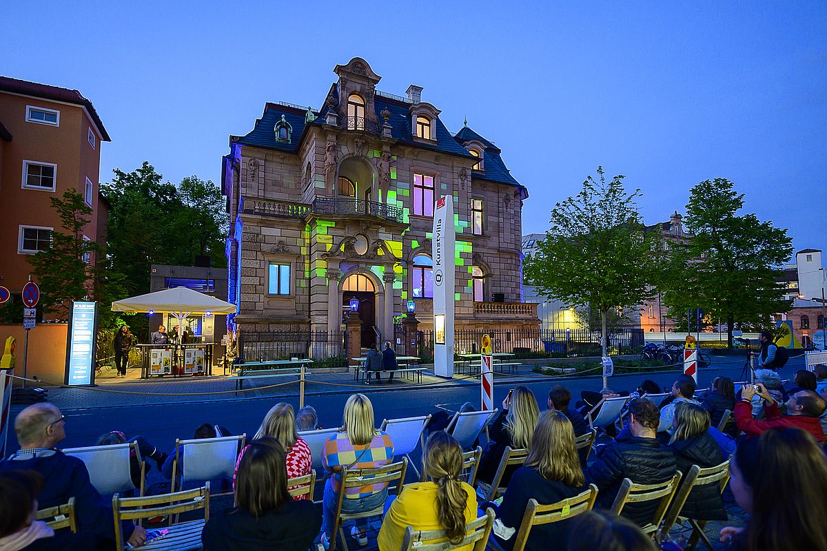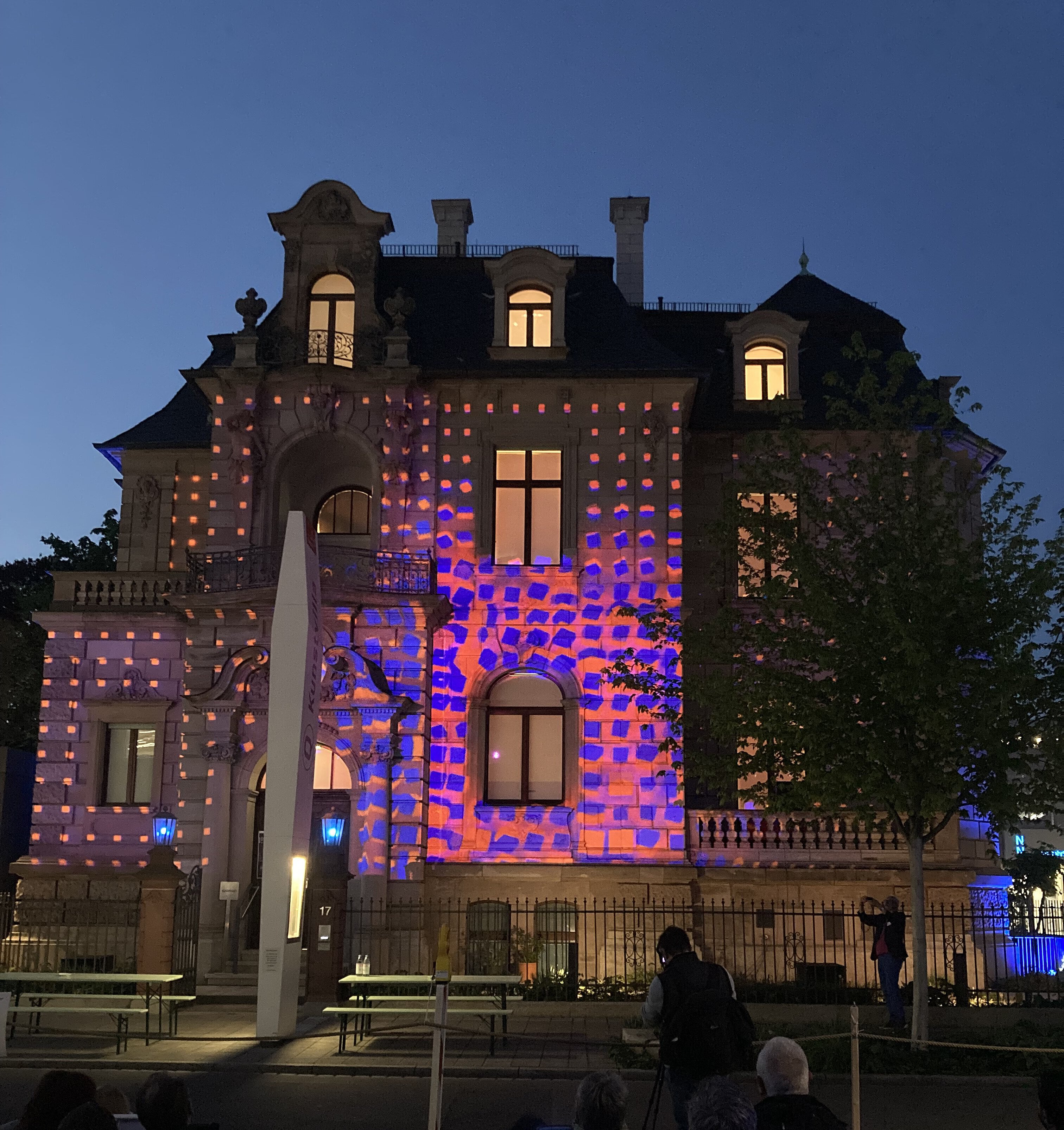 Der VEB Lichtbildklub rund um Max Baumer hat mit der auf die Fassade der Kunstvilla gerichteten Projektion „Nachts vorm Museum“ den diesjährigen Publikumspreis der Blauen Nacht gewonnen.