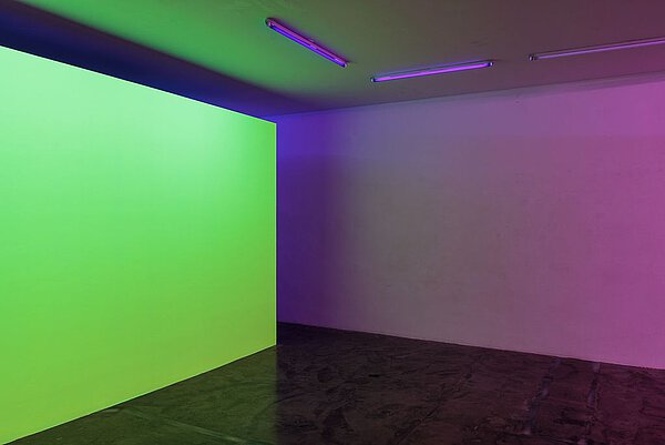 Mit meist nur minimalen Eingriffen gelingt es Zora Kreuzer (*1986 in Bonn, lebt und arbeitet in Berlin), höchst poetische und sinnlich erfahrbare Licht- und Farbräume zu schaffen. Dabei experimentiert sie mit der Intensität, den Nuancen und der Temperatur einzelner Farben und lotet ihre Wechselwirkungen durch Überlagerung, Mischung und Anordnung aus: Architektonische Eigenheiten werden in ihren Installationen neu bewertet, indem die Künstlerin sie betont oder zurücknimmt. Ohne dabei in den materiellen Bestand der Architektur einzugreifen verändert sie damit unsere Wahrnehmung des Raums.