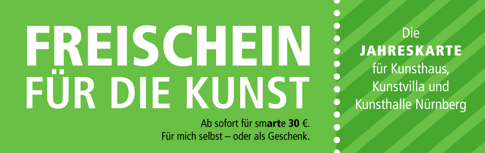 Weihnachten naht in großen Schritten und immer noch keine Idee für ein besonderes Weihnachtsgeschenk? Wie wäre es dann mit der Jahreskarte für alle Kunsthäuser des KunstKulturQuartiers? Kunstfreunde freuen sich über 12 Monate freien Eintritt in alle Ausstellungen der Kunsthalle Nürnberg, der Kunstvilla und des Kunsthauses.