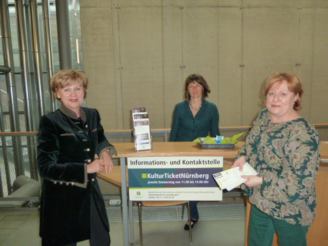 Jeden Donnerstag von 11 bis 14 Uhr ist die Kontaktstelle für das Kultur Ticket Nürnberg im Foyer des Kunsthauses besetzt.