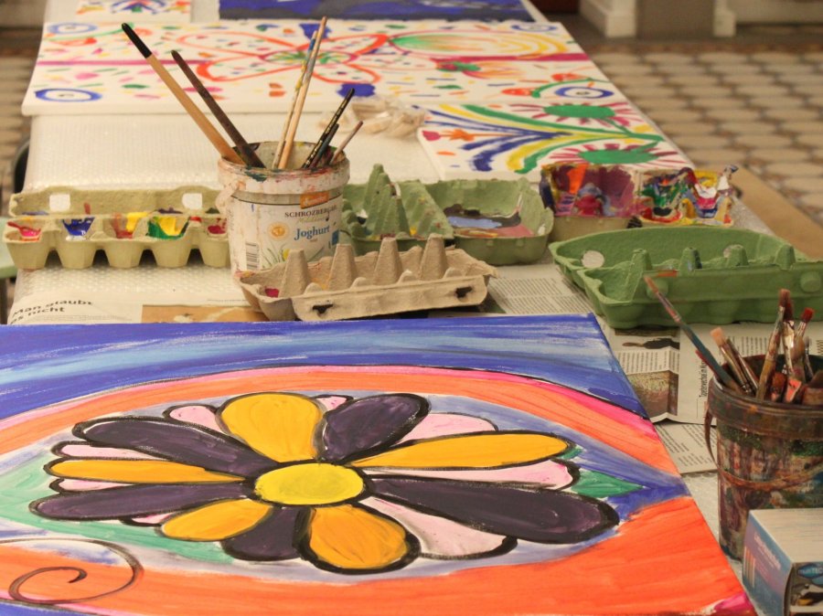 In der KinderKunstwerkstatt können ukrainisch sprachige Kinder ab fünf Jahren von 11 bis 12:30 Uhr mit Kateryna Chebotarova werkeln, malen, kneten, formen und zeichnen.