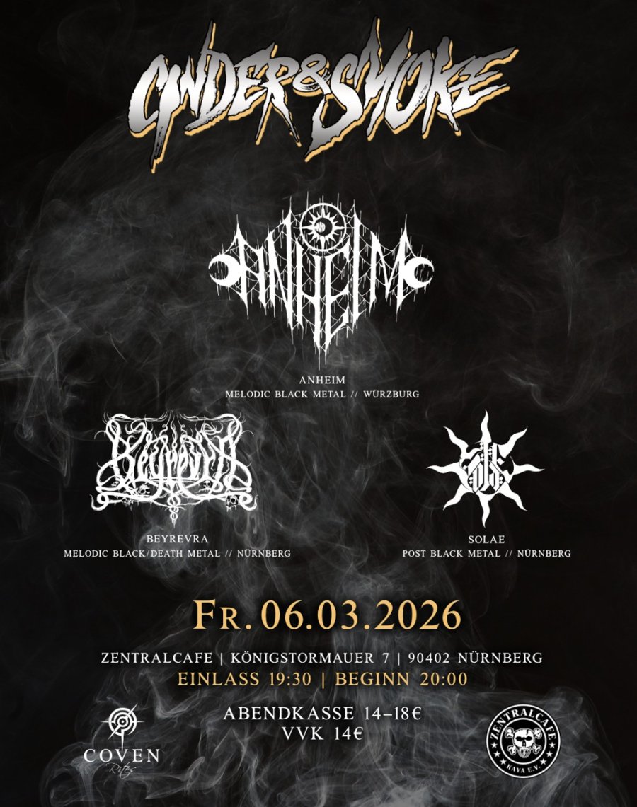 Die Metal-Veranstaltungsreihe „Cinder & Smoke“ des Vereins „Coven Rites e.V.“ startet in die zwölfte Ausgabe!