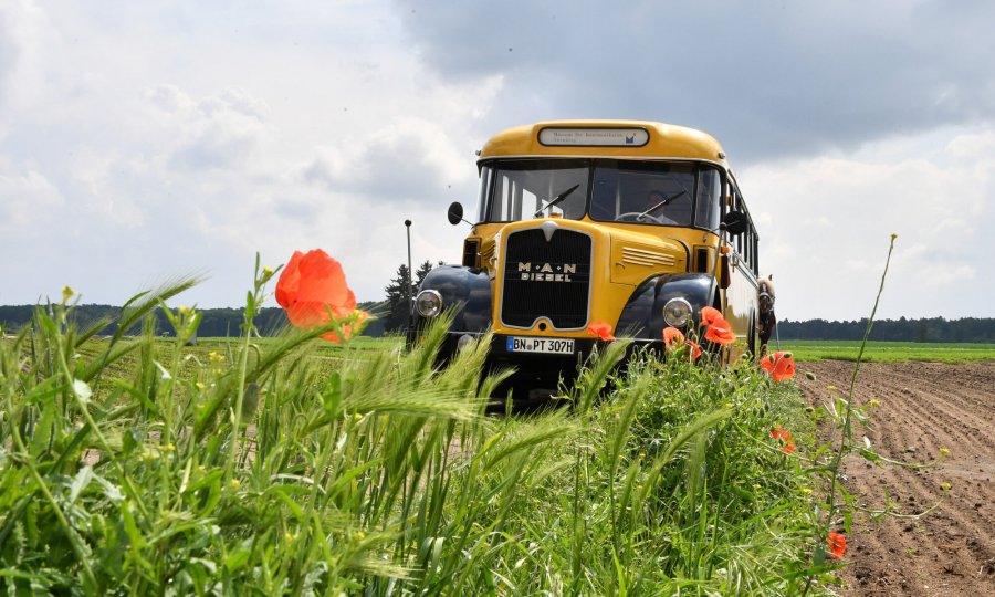 Der Museums-Kraftpostbus (Jahrgang 1956) startet mit einer Fahrt zu einem Architekturschatz: der Poststadt. Der ehemalige Fernmeldetechniker Rainer Eck kennt aber noch weitere Schätze dieses Ortes. Erfahren Sie, wie dort Münzgeld aus Fernsprechhäuschen sowie Telefonkarten aufbewahrt und bearbeitet wurden.