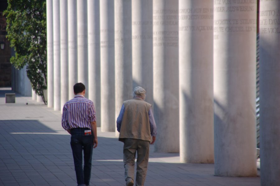 Die Straße der Menschenrechte ist ein begehbares Kunstwerk direkt neben dem Germanischen Nationalmuseum. Gemeinsam lernen wir dort etwas über das Denkmal und darüber, warum diese Straße gerade in Nürnberg steht. Was bedeutet es für jeden Einzelnen, Menschenrechte zu kennen und zu achten? In leicht verständlicher Sprache vermittelt das inklusive Kultour-Tandem Wissen über grundlegende Regeln des gemeinsamen Miteinanders und macht die Bedeutung der Menschenrechte für alle erfahrbar.