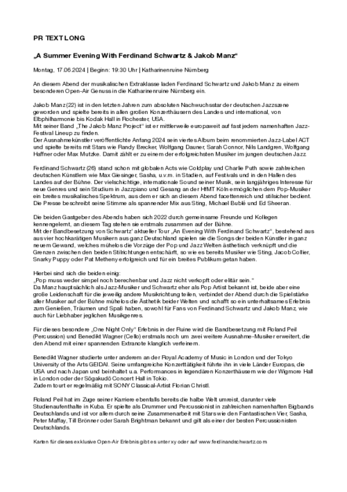 A Summer Evening With Ferdinand Schwartz & Jakob Manz